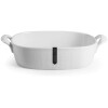 Description: Square, white, ceramic baker. Embossed with a subtle linen pattern. A classic piece with a modern touch!