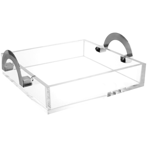 This magnificent Lucite tray features easy to carry handles. Enjoy this stunner daily, weekly & at parties with its multiple use! The perfect Lucite Matzah Tray, Bread Tray, Lucite Fruit Tray, Lucite Salad Tray, Lucite Bathroom Tray, Lucite Candy Tray or Lucite Serving Tray! The tray is 8mm Thick Crystal Clear Lucite.
