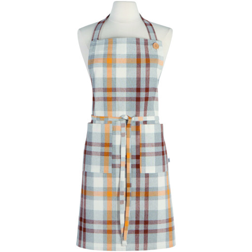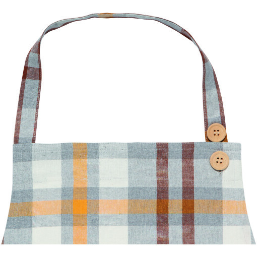 A soft cotton apron is paired with extra long waist ties and a wooden button closure for function and charm. Set your table in a field of gold with this autumn-hued plaid pattern. Any gathering becomes a golden hour with the rustic charm of the Maize Plaid collection. Made of 85% Recycled Cotton / 15% Recycled Polyester.