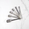 - Narrow design fits easily into smaller openings of spice jars; longer handles reach bottom of jars easily; measurements clearly etched on each handle
