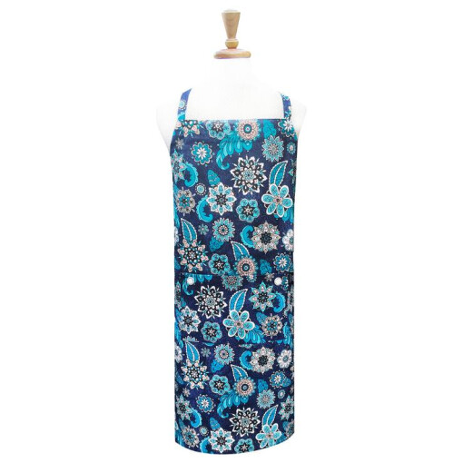 This classic Midnight Shadow Chef Apron by Two Lumps of Sugar measures 33″ long, and features a large pocket with two buttons to hang a towel or potholder. Features an adjustable neck strap to fit any adult or teen. The apron is made of 100% cotton, coated with an exclusive stain and water repellent, light polyurethane finish on the front side. The coated finish keeps clothing dry when washing dishes. Perfect for cooking, baking, crafting and more.