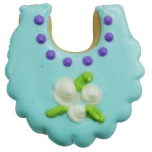 Tinplated Steel Mini Baby Bib 2″ Cookie Cutter. Hand wash and dry thoroughly before storing.