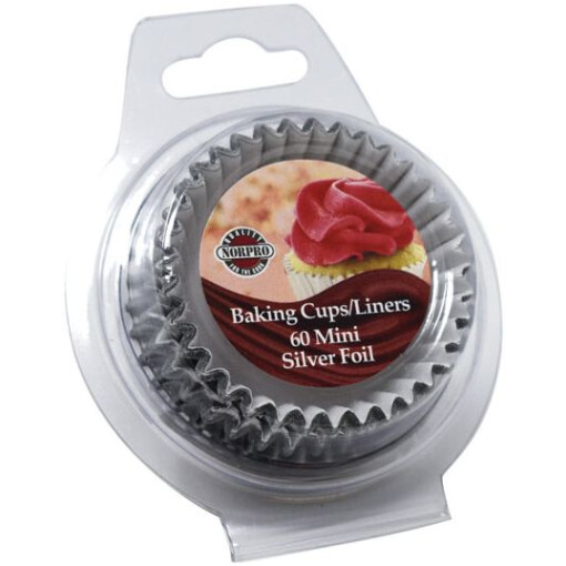 Silver foil sets elegant party tone! Use these mini liners for mini cupcakes, muffins, bonbons, or candy cups. Diameter-1″ includes 60 pieces.