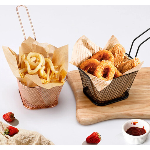 The fry baskets are cool to serve in party for french fries, onion rings or appetizers, also could be a food presentation basket, very neat to treat guests.