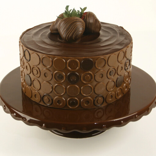 TO USE WITH CHOCOLATE Spread melted candy coating or melted and tempered chocolate on sheet. (It is easiest if mat is cut height desired). Allow chocolate to “just set” and form sheet around cake. Place in refrigerator to set.