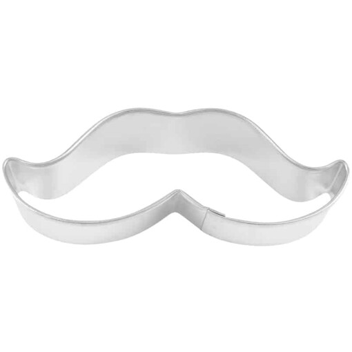 Tinplated Steel Mustache 4″ Cookie Cutter. Hand wash and dry thoroughly before storing.