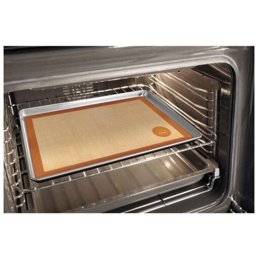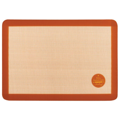 Mrs. Anderson’s Big Non-Stick Silicone Baking Mat is the largest to fit home ovens for baking cakes, breads, dough, pastries, and savory dishes. The Mat is naturally non stick for quick release of foods and easy cleanup; no greasing or added oils necessary, and it is durable and reusable for thousands of uses. Made from silicone and natural glass fibers for even heat transfers. Mat measures 20.5-inches x 16.5-inches; holds 35 (2-inch) or 24 (2.5-inch) cookies; fits standard 16-inch x 22-inch baking sheets; dishwasher safe