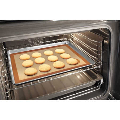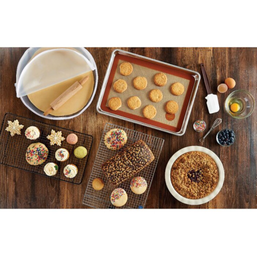 Mrs. Anderson’s Baking Sheet and Baking Mat Set is perfect for baking biscuits, breads, cakes, cookies, pastries, and savory dishes. The silicone baking mat is naturally non stick for quick release; no greasing or oils needed, and it is durable and reusable. The baking mat is temperature safe for use in the oven and freezer (-40 degrees to 480 degrees Fahrenheit); reusable and more economical than using parchment paper. Dimensions: baking sheet measures 13 x 18 inches, and silicone mat measures 11.625 x 16.5-inch.