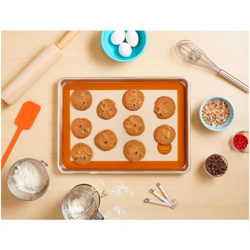 Mrs. Anderson’s Heavyweight Half-Sheet Biscuit Pan is a commercial-grade baking pan that’s specially sized and designed for bread making and cake baking. Simply line the Baking Pan with parchment or a baking mat, place items to be baked or frozen onto the Baking Pan, and pop it in the oven or freezer. This Half Sheet Baking Pan is designed to perfectly fit Mrs. Anderson’s Non-Stick Silicone Baking Mat and Cooling Rack, both sold separately.