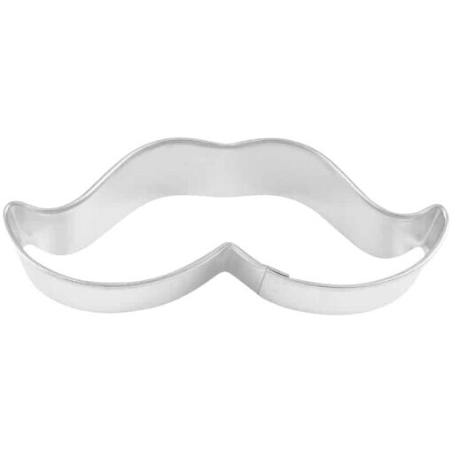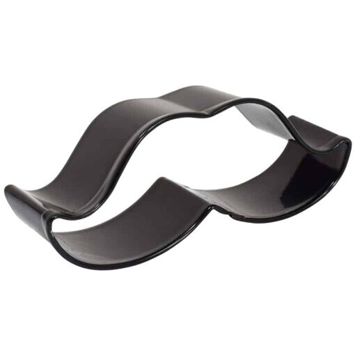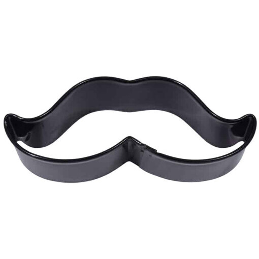 Tinplated Steel and black made of Polyresin Coated Steel Mustache 4″ Cookie Cutter. Hand wash and dry thoroughly before storing.