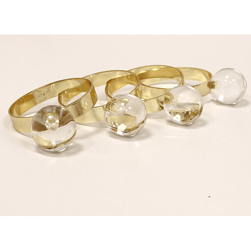 Enhance your table setting with our set of 4 gold napkin rings, which feature elegant clear ball details. These 2″ rings add a touch of sophistication to any dining affair. Crafted from high-quality materials, they ensure a perfect fit for your napkins and serve as an exquisite finishing touch.