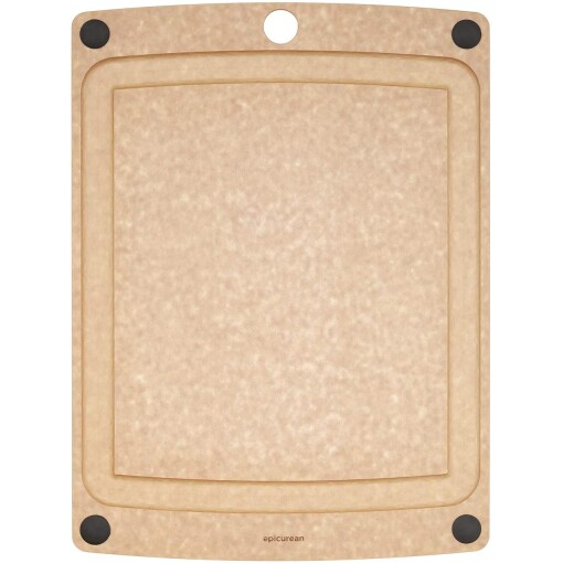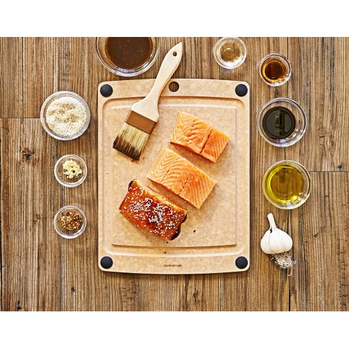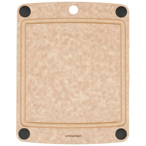 The best features of our most popular boards were combined into the Epicurean All-in-One Cutting Board Series. Utilize both sides of the board – use the juice groove side to catch excess liquids, or flip the board over if you need even more space. The four non-slip silicone feet keep the board secure either way.