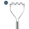 This durable aluminum Garlic Press works well with both peeled and unpeeled garlic, eliminating the need to peel garlic cloves. The handy cleaner removes the skin from the holes and neatly stores inside the handle. This garlic press is constructed of aluminum and has a nonstick coating.
