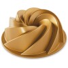 The swirling design of this Nordicware Heritage Bundt pan yields a unique cake that adds elegance to any occasion. Original cast aluminum bakeware provides fine details and superior baking performance. Distinctive premium nonstick interiors allow for quick release and easy cleanup. Available in 10-cup capacity or 6-cup capacity. Limited Lifetime Warranty.