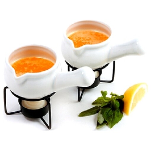 Serve your melted butter with style with these beautiful Butter Warmers. Made of durable, elegant ceramic, these warmers keep your butter, cheese or chocolate warm for hours without clumping or curdling. They will look great on your table. Also ideal for serving your favorite cold dips with your hors d’oeuvres. Perfect for special occasions or everyday use. Each dish holds 1/3 cup/3 ounces. Stands and tea lights included. Dishwasher safe.
