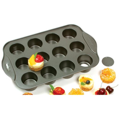 This nonstick mini cheesecake pan is also great for quiches, tartlets, muffins, coffee cakes, hours d’ouveres and more. It has removable bottoms for easy removal and cleaning. The nonstick coating makes items easy to release and clean.