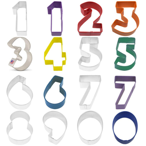 Tinplated Steel or Colored Polyresin Coated Steel 3″ Numbers Cookie Cutter. Hand wash and dry thoroughly before storing.