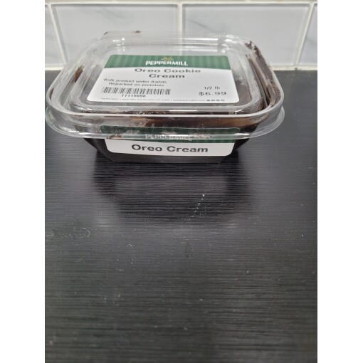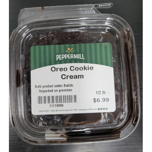 Ingredients: Sunflower oil, sugar, dark cookies (wheat flour, sugar, vegetable fat, cacao powder, dietary fiber, emulsifier, raising agents, artificial flavor, and salt), cocoa powder, maltodextrin, soy lecithin, artificial flavors, food color, and salt.