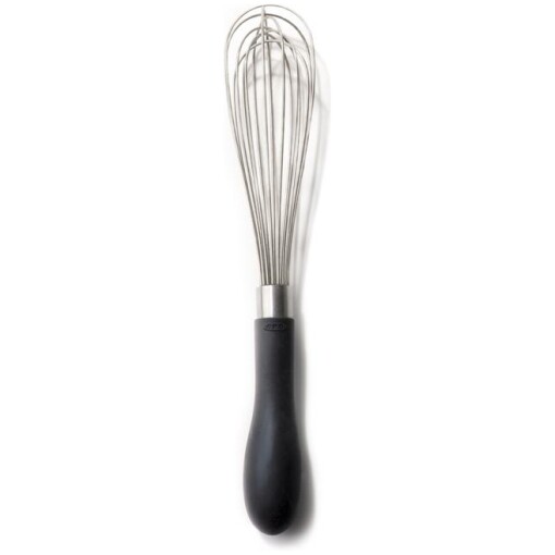Our Good Grips Whisks feature polished stainless steel wires and teardrop shaped handles that fit comfortably in the palm of your hand. The soft handle won’t slip out of your hand, even when wet. Beat eggs, stir batter, whip cream and stir sauces in comfo