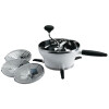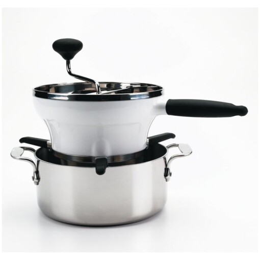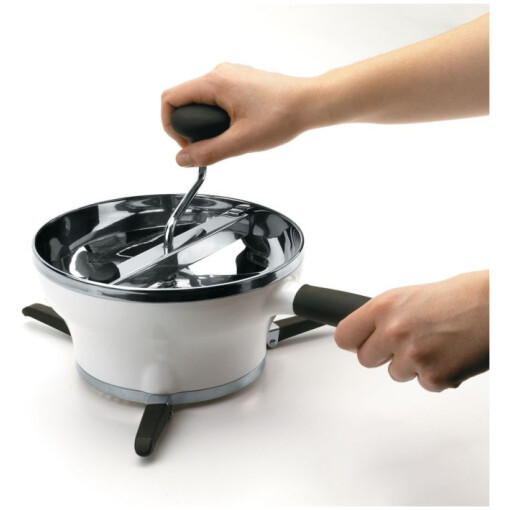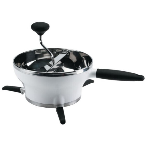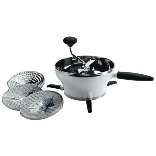 Whether you’re preparing hot or cold foods, the stainless steel inner bowl helps preserve temperature and won’t stain. Includes three grinding discs for fine, medium and coarse textures. Unique release button makes it easy to exchange discs and disassemble. Legs fold for easy storage.