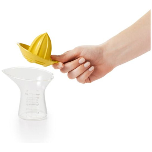 Our Small Citrus Juicer is perfect for your juicing needs! The unique reamer design makes juicing efficient and easy, while the built in strainer catches seeds and pulp. The compact container features convenient measurement markings and a spout for drip-free pouring to minimize messes. The Small Citrus Juicer comes apart for easy cleaning.