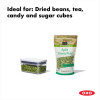 Airtight, space-efficient and stackable storage solution ideally sized for tea, candy, 16 oz. of dried beans.