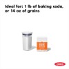 Airtight, space-efficient and stackable storage solution ideally sized for 1 lb. of baking soda or 14 oz. of grains.