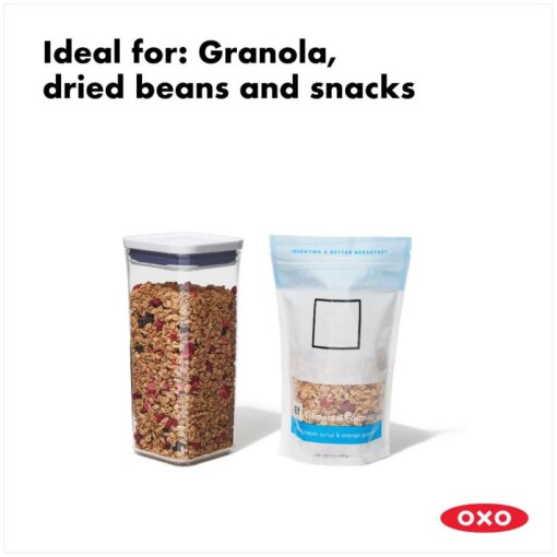 Airtight, space-efficient and stackable storage solution ideally sized for granola, dried beans and snacks.