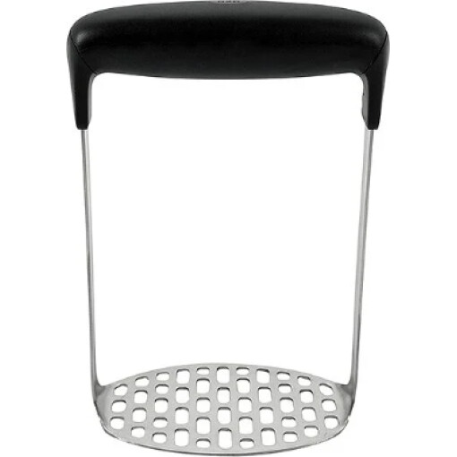 This innovative Potato Masher lets you make smooth mashed potatoes with less pressure on your hands. A broad, soft, horizontal handle lets you press straight down while it cushions your grip and absorbs pressure. A fine-grid, stainless steel mashing plate yields smooth mashed potatoes with no lumps.