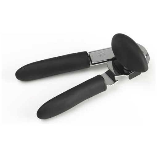 Our Good Grips Can Opener makes opening a can easy on your hands. Big, cushioned handles give you extra strength to pierce a can, and the oversized knob turns easily. The sharp cutting wheel is made of sturdy stainless steel and the soft, comfortable hand