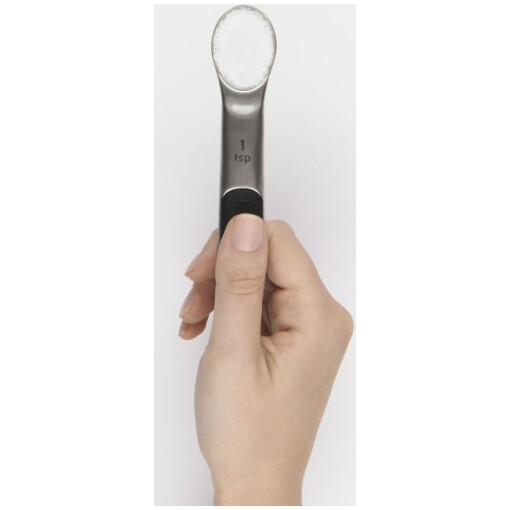 The Stainless Steel Measuring Spoons’ unique magnetic feature keeps the spoons neatly stacked together and allows you to easily remove one at a time. The soft, comfortable, non-slip handles feature permanent, etched measurement markings. Set includes 1/4 tsp, 1/2 tsp, 1 tsp and 1 T Spoons.