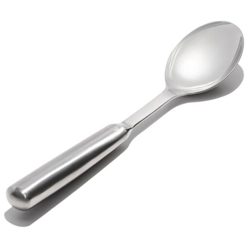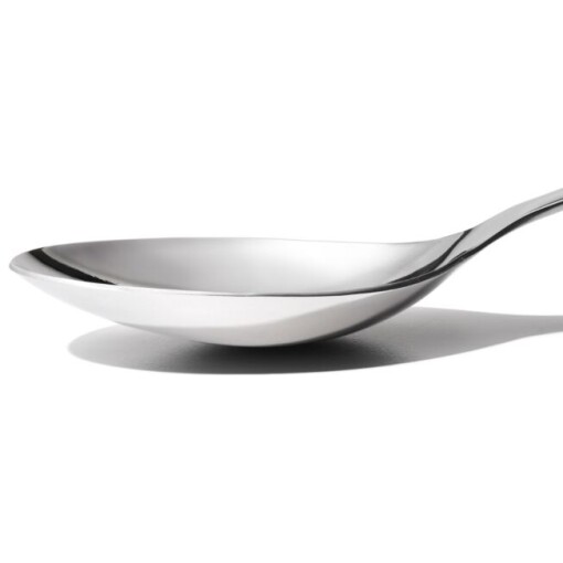 The OXO Steel Serving Spoon has a deep well, which gets more food and sauce with every scoop, and a slightly angled head, so that you don’t have to stand up to serve. The tapered handle features a non-slip grip for added comfort. Dishwasher safe.