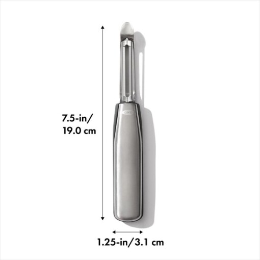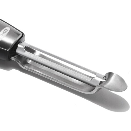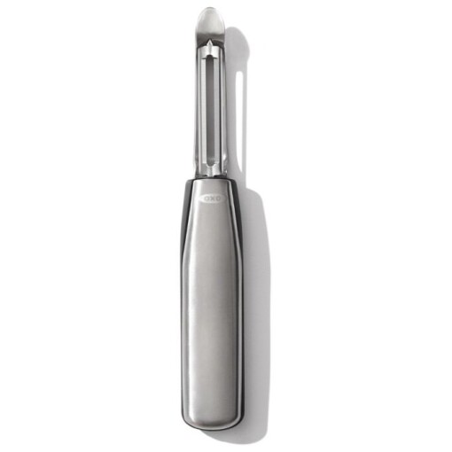Need to peel a bushel of apples? Or a few pounds of potatoes? The OXO Steel Swivel Peeler can make quick work of the task. The Peeler features a sharp, blade, which swivels to glide effortlessly around firm fruits and vegetables. The blade digs under skin but leaves all the good stuff underneath intact. There’s also a built-in eyer to remove imperfections in a single scoop. And the sleek handle gives a pro-level look while also providing a comfortable grip.