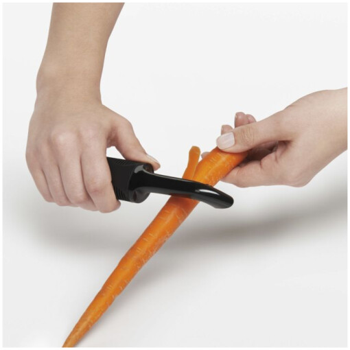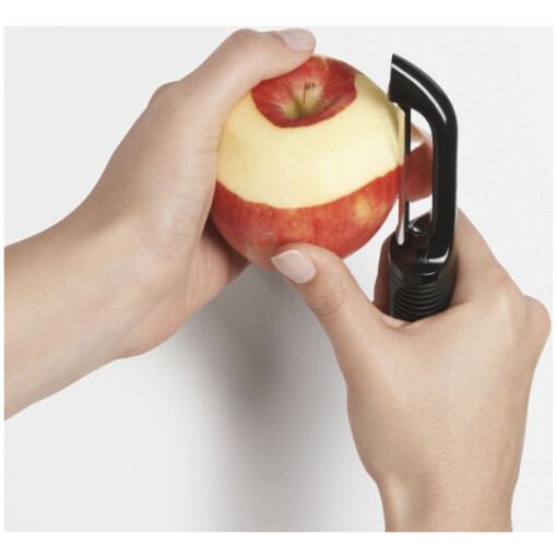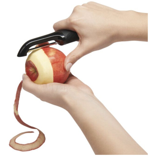A classic for firmer vegetables, the Swivel Peeler’s sharp, hardened stainless steel blade removes those inedible outer layers with ease and leaves all the good stuff underneath intact. The cushioned handle won’t slip, even when your hands are wet. Features a built-in potato eyer.