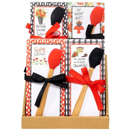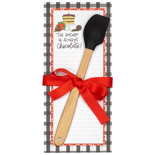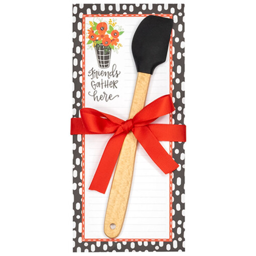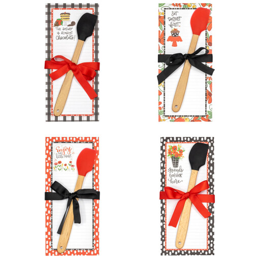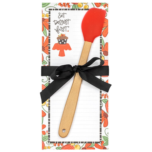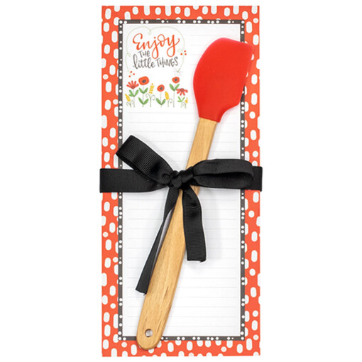 Colorful and trendy list pads with silicone mini spatula and hand-tied ribbon. It has a magnet on the back so you can hang it on the fridge.