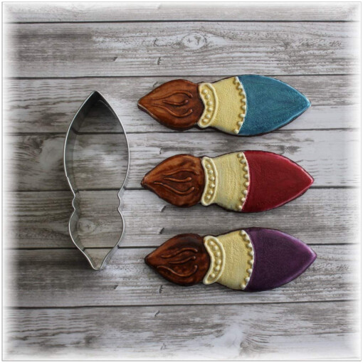 Tinplated Steel Paint Brush 4″ Cookie Cutter. Hand wash and dry thoroughly before storing.
