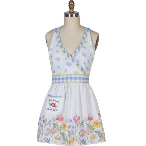 Live life in full bloom with this sweet collection, as you make the kitchen beautiful with the wondrous colors of nature’s flower show. Flattering V-neck shape features embroidery detailing on the convenient pocket. Protect your clothing in style as you feel as though you’re wearing a pretty summer dress! 20 in x 30.5 in.