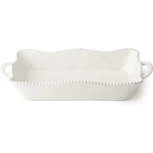 This Perlette Cream Medium Rectangular Baker blends elegance and practicality with its scalloped rim and delicate beading. Its versatile design complements any décor and is oven safe, making it perfect for both daily use and special occasions. Celebrate tradition and the joy of sharing meals with this timeless serveware addition.