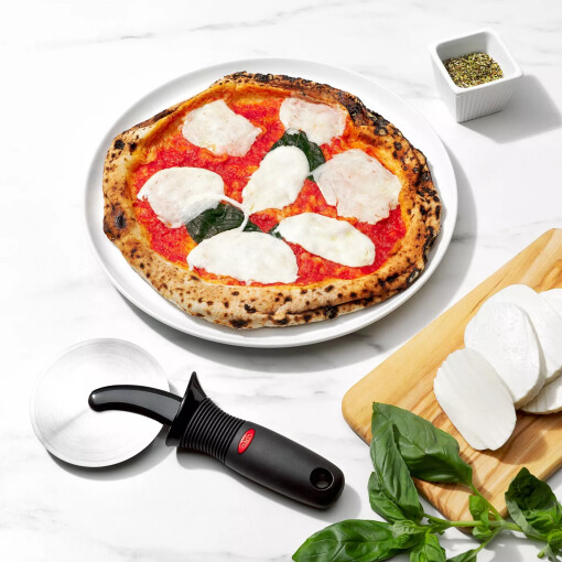 The OXO SoftWorks Pizza Wheel slices through mushroom, tomatoes, and extra cheese with ease. This stainless steel pizza wheel is sharp enough to easily cut through crunchy crusts and large enough to cut through thick crusts. Simply throw it in the dishwasher when you’re done.