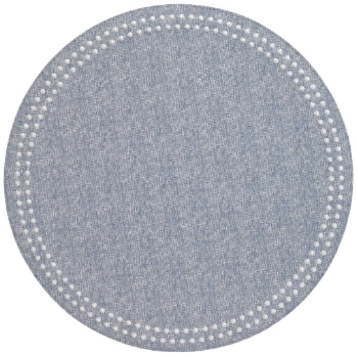Round mats with pearl-like embroidered dots around the edge add a touch of classiness to any tablescape. Available in multiple colors.