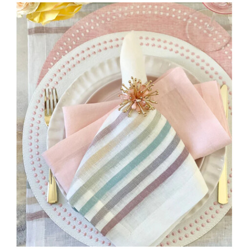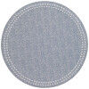 Round mats with pearl-like embroidered dots around the edge add a touch of classiness to any tablescape. Available in multiple colors.