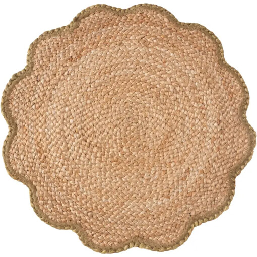 Breathe natural texture into the table with this braided jute placemat, shaped in a graceful scallop and tipped with a soft sage border. The organic pattern and sturdy weight layer beautifully beneath everyday plates and serveware, lending relaxed polish from breakfast to candlelit meals.