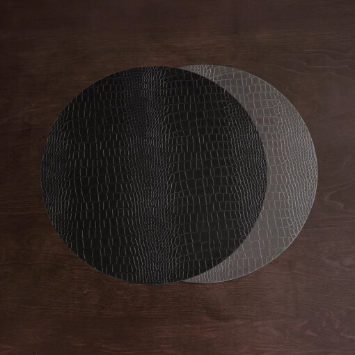Double the options! VIDA Croc Reversible 15.5″ Round Placemats Set of 4 (Black and Grey) will give any table an instant makeover with pops of color, pattern, and texture. A double makeover!