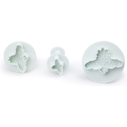 Make professional looking decorations on your cakes, cookies, or cup cakes with these Plunger Cutters, by Fox Run. It’s constructed of durable, lightweight plastic. The cutter is easy to use, just roll your fondant, cut and plunge, and you will be left with a beautiful textured design.
