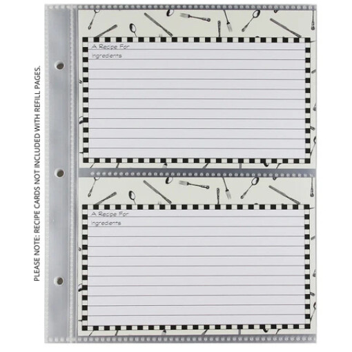 Makes protecting and using your favorite recipes easy and convenient! Expand your trusted recipe book with these refills.Set of 20 transparent acid-free and PVC-free refill pocket pages for C.R. Gibson Recipe Organizers and Recipe Memory Books. Each page holds two 4 x 6 inch recipe cards.