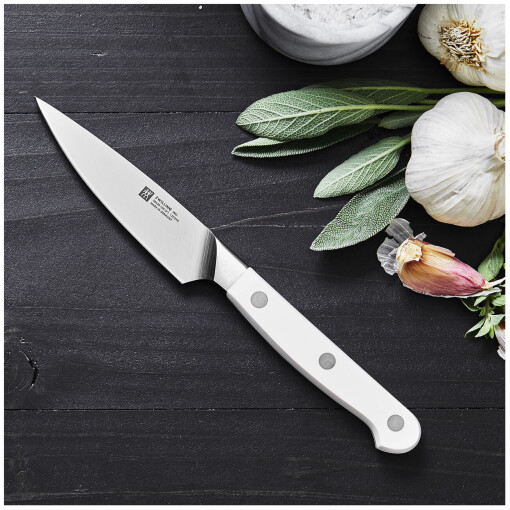 The 4-inch paring knife is essential for small-scale tasks like peeling vegetables, segmenting fruit, and slicing garlic. Make precise and detailed cuts with ease.