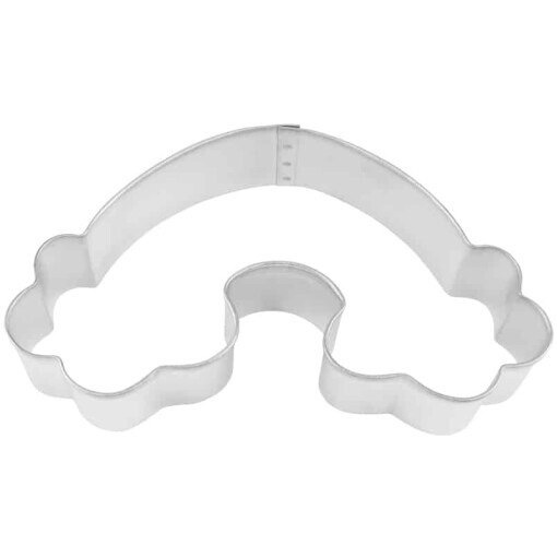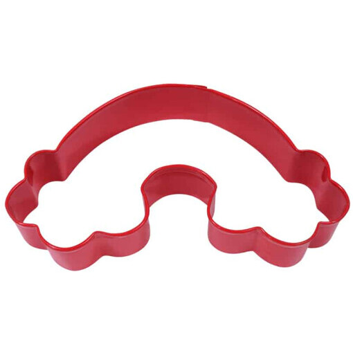 Tinplated or Red Polyresin Coated Steel Red Rainbow 4.75″ Cookie Cutter. Hand wash and dry thoroughly before storing.