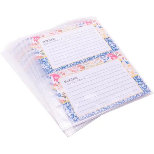 Keep your cherished recipes organized and easily accessible with this artful floral Recipe Keeper. Our comprehensive set includes 20 clear acrylic sleeves to protect your recipes from spills and stains, 40 designer recipe cards perfect for adding your own personal touch, and 12 printed dividers to help you quickly find your desired recipe. With a compact size of 8.25″ x 9.25″ x 2″, it’s the perfect addition to any kitchen. Say goodbye to messy recipe books and hello to a streamlined and efficient cooking experience.