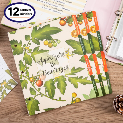 - These recipe books are user-friendly and convenient, making them easy to customize by organizing pages into categories. Just open cook books to write in 3 ring binder and reorganize the pages to suit your needs. Leather 3 ring binder is designed with 12 tabbed category dividers that are conveniently labeled for you according to recipes’ type, meaning they’re easy to find based on what kind of meal you want!