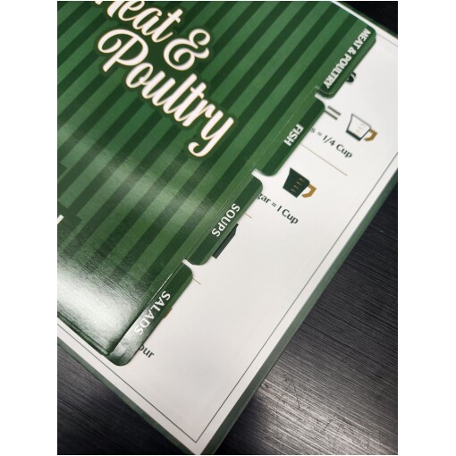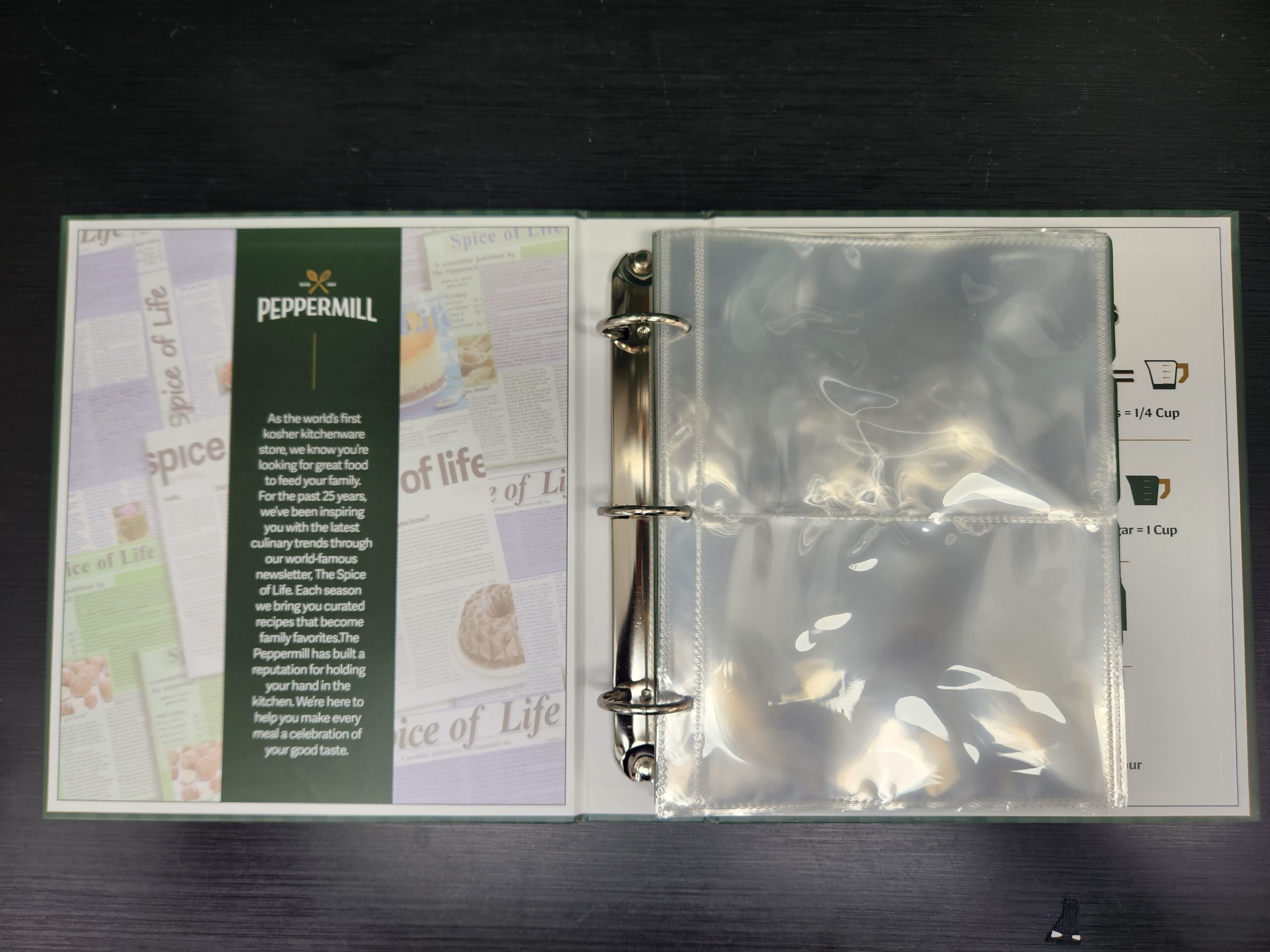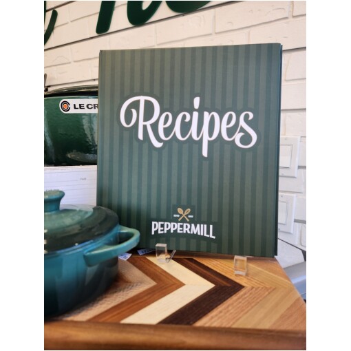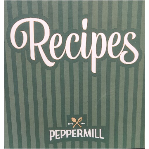 It’s here! The Peppermill Recipe Collector! You can now organize all the free recipe cards you’ve picked up in a beautiful recipe binder! Crafted in our signature color, this recipe book includes well-organized dividers and plastic sleeves.